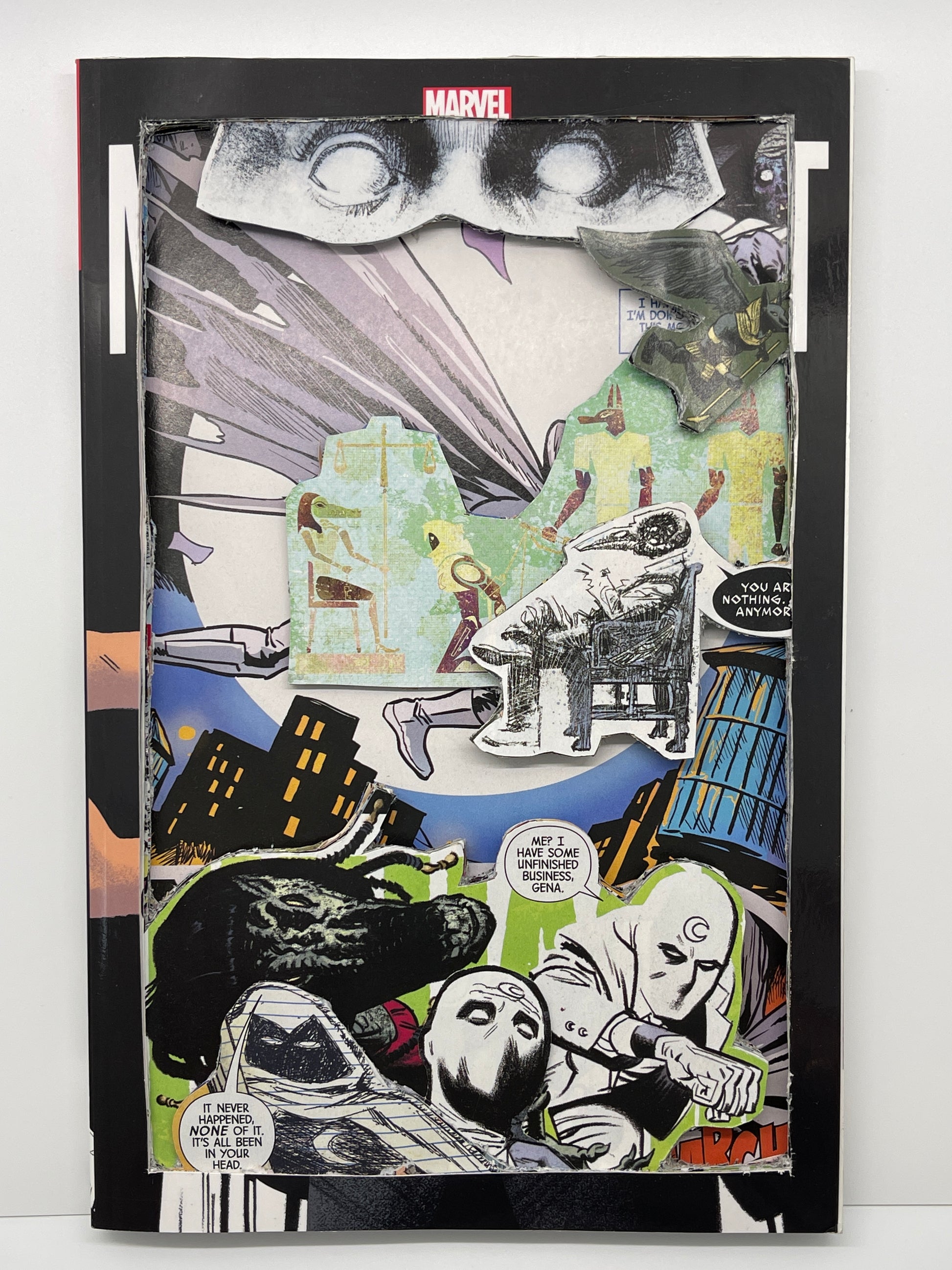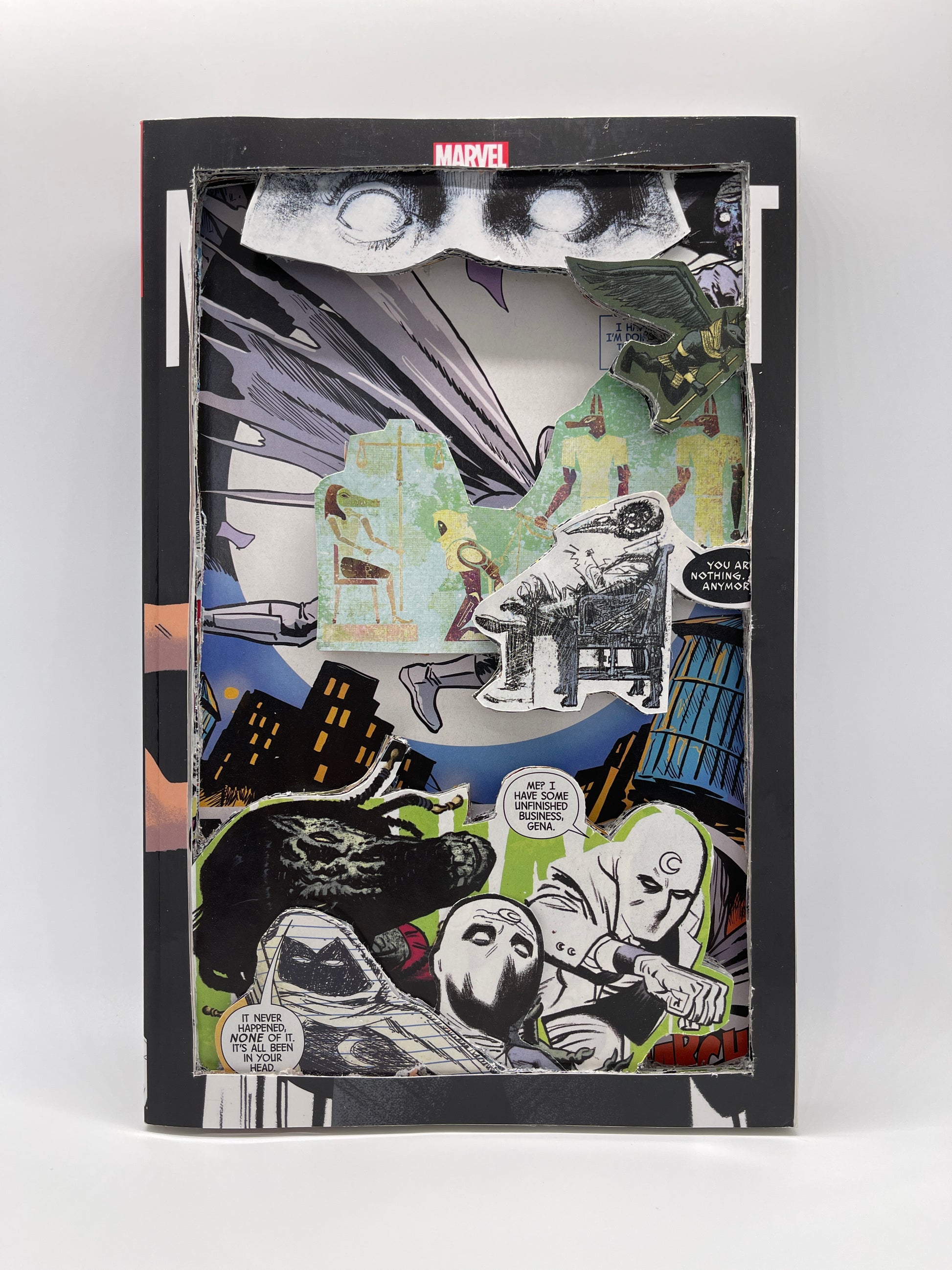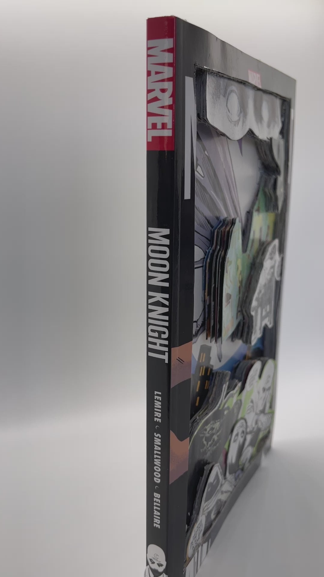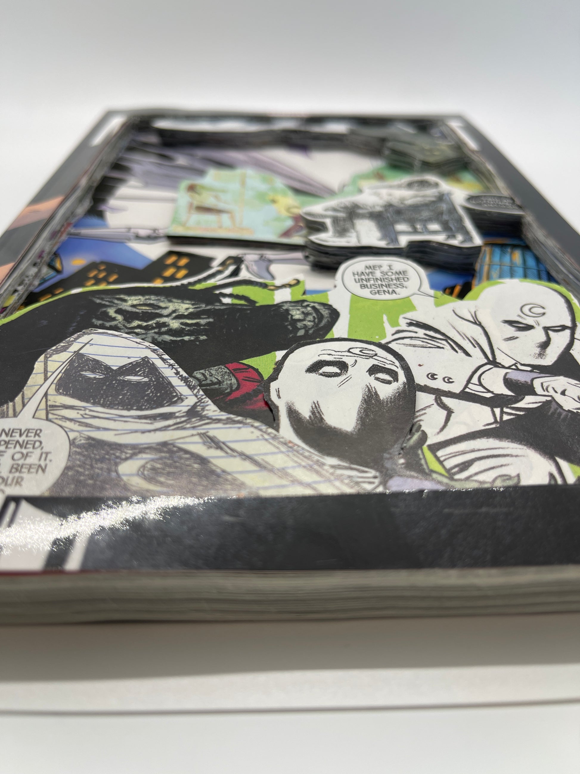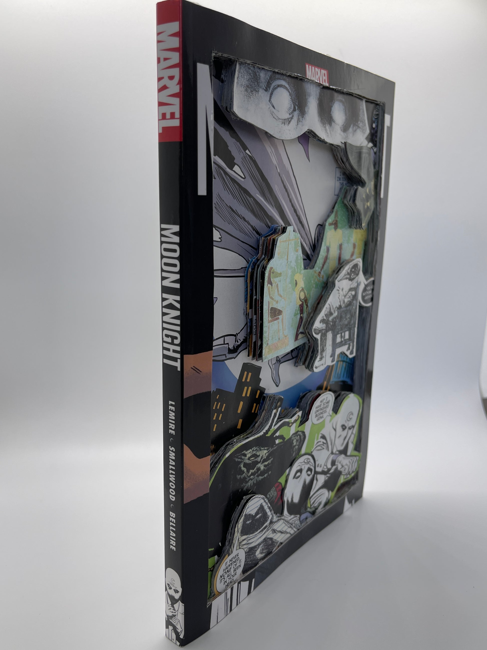 Graphic novel, “Complete collection of Moon Knight” One of a kind book carving.