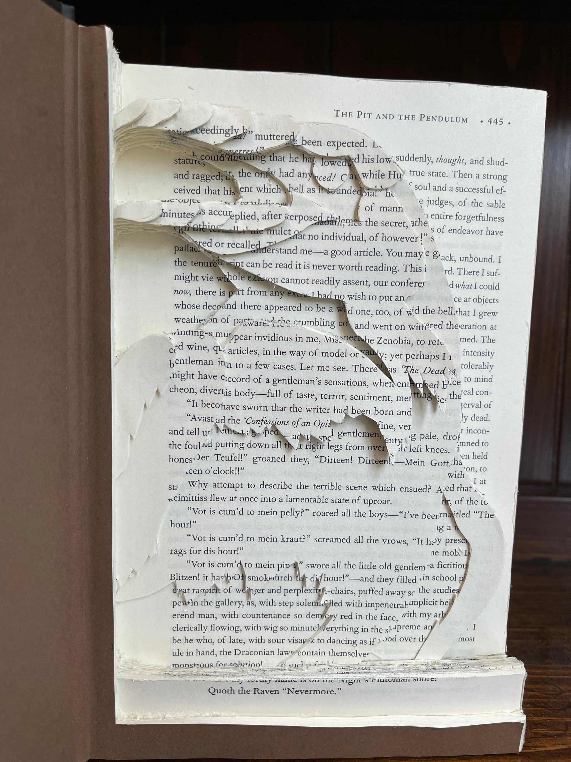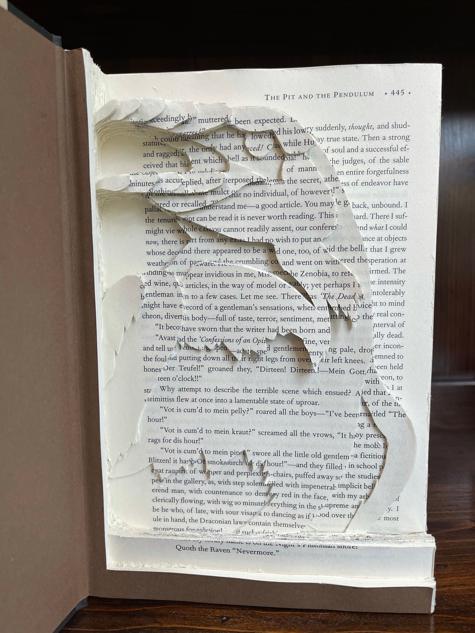 I was drawn to this book simply by how thick it is. I decided to cut the image of a Raven into it