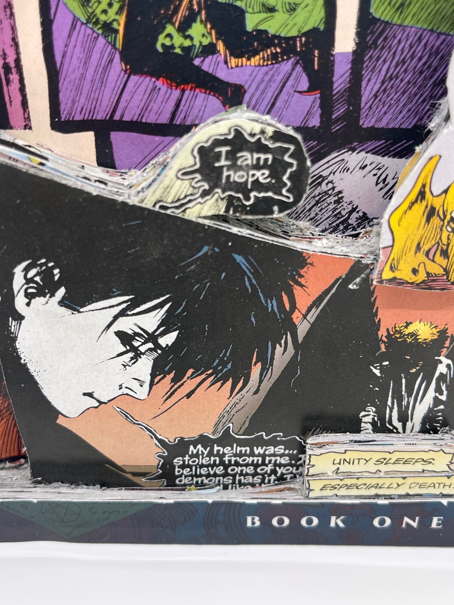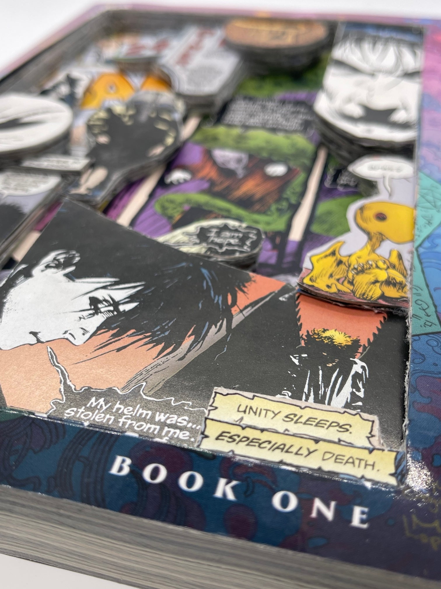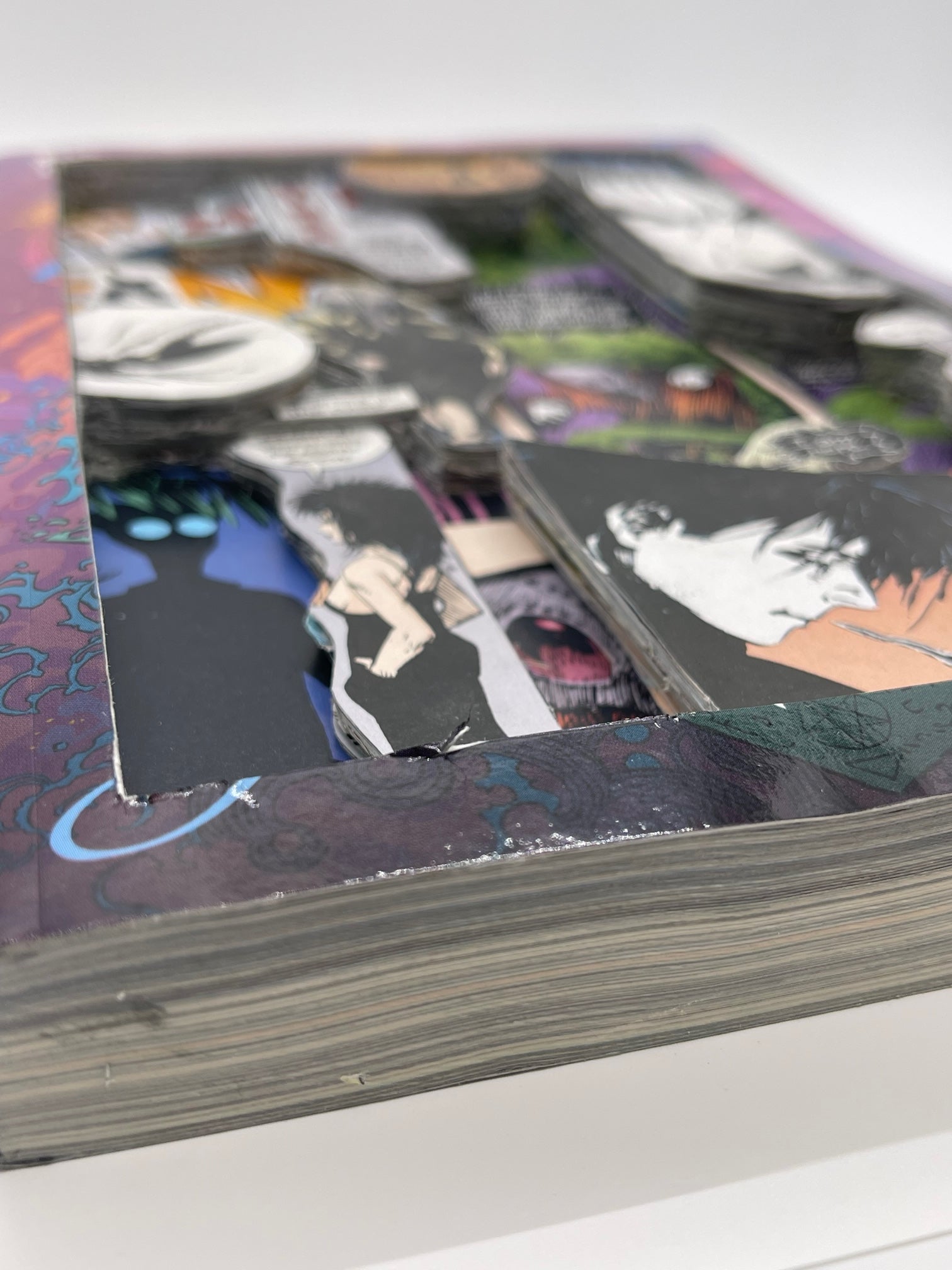 This is the first graphic novel that I have worked with. It is also distinct from my other carvings because it is not a hardcover. I felt comfortable carving it because of its thickness. I love Neil Gaiman’s work and decided to seek out this collaboration after watching the Netflix series.